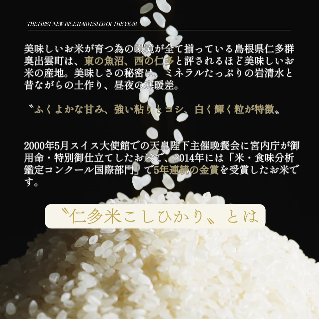 美味しいお米が育つ為の環境が全て揃っている島根県仁多群奥出雲町は、東の魚沼、西の仁多と評されるほど美味しいお米の産地。美味しさの秘密は、ミネラルたっぷりの岩清水と昔ながらの土作り、昼夜の寒暖差。